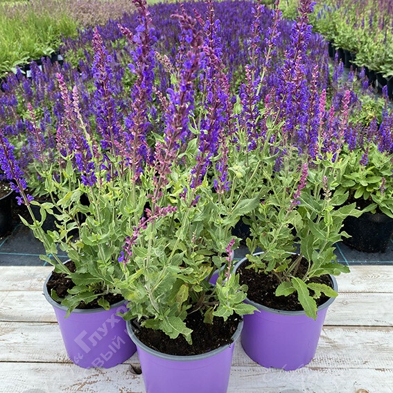 Данный сорт шалфея достигает высоты около 60–70 см и имеет плотную, прямую и густую форму. Кустарниковидная структура делает его подходящим для создания бордюров или живых изгородей. Листья серебристо-зелёные, шероховатые. Цветение в середине лета образуются крупные сине-фиолетовые соцветия. После обрезки зацветает повторно в августе–сентябре.